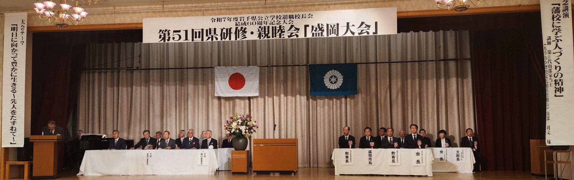 岩手県公立学校退職校長会は、昭和40年結成以来、「研修・親睦・社会貢献」を合言葉に、会員相互の親交を深め、連帯意識の高揚と一人ひとりの生きがいの創出を目指し、豊かな生涯学習社会推進への貢献と本県及びわが国教育の振興に寄与することを期して活動を展開してまいりました。